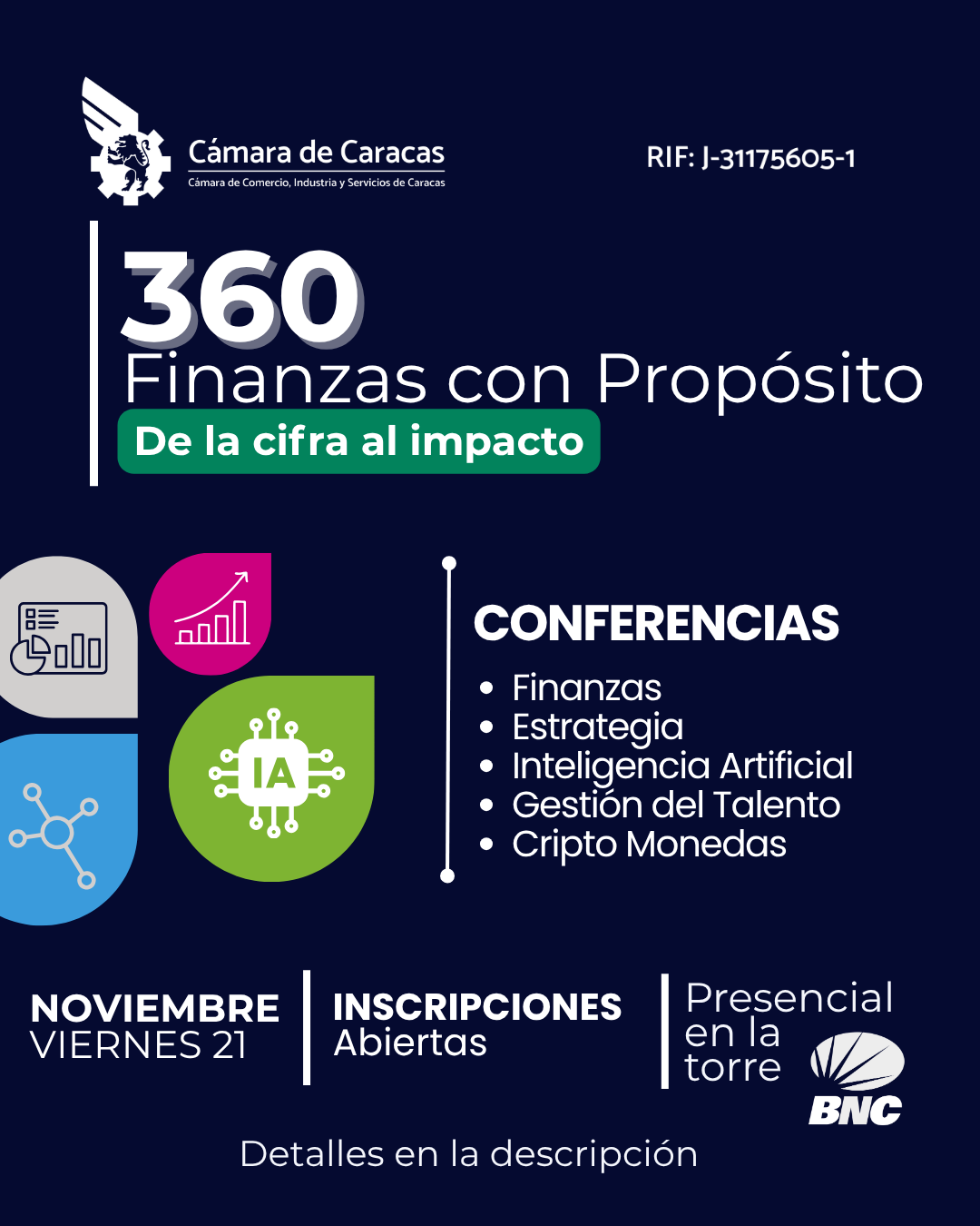 - Lugar: Presencial en la Torre BNC